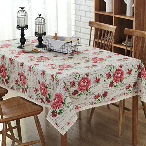 -. Title : YJ Bear Cotton Linen Beautiful Flower P.R.Int Square Tablecloth Desk Cover Table Cover for Home Decoration Table Cloth for Dinner Washable