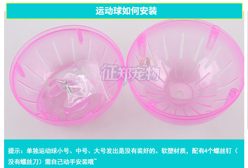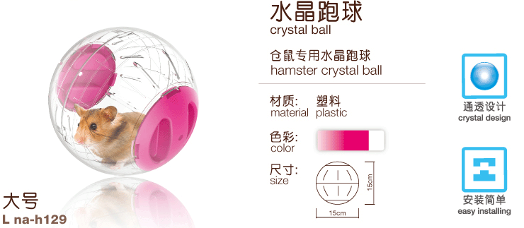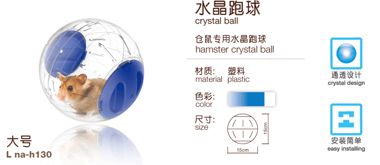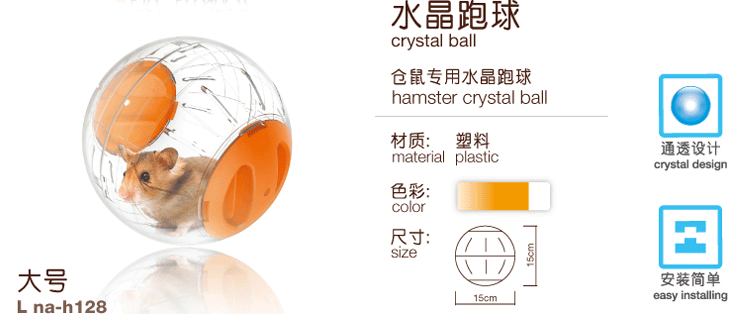 New Age small hamster crystal running ball, the overall design of transparent, the owner can more intuitively observed the whole process of hamster baby's movement. This product is made of high quality materials, the assembly is simple and convenient, is a good toy rat and rat sport play.