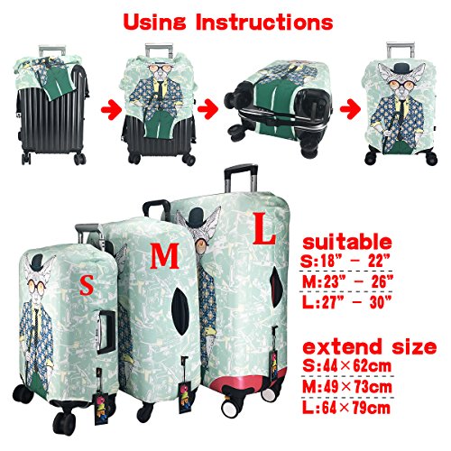 -. Feature : We ONLY sell the lage covers WITHOUT SUITCASES. And if you would like open or close your lage, you need remove the lage cover. This design is in order to avoid the lage being opened by itself accidentally then cause your lage drop / 10% spandex and 90% polyester,230-260 GSM / Zippered design with elastic at the bottom of the suitcase,and this double protection provide more safe than others covers on the market; / Superior sublimation quality makes the pattern more vivid and the color brighter.But please allow a little color different due to different display or light environment / Fit quickly and easily in seconds. Durable and washable, 3 sizes available to fit almost any lage.S: fit 18-22 inch lage, M: fit 23-26 inch lage, L: fit 27-30 inch lage.