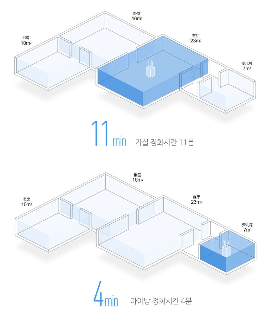 생선을 굽는다가.. 거실같이 큰공간에서 처음에 켰을때.. 가습기의 수분이 움직일 정도로 공기의 움직임이 크게 돌아갑니다. 이때도 물론 거실의 청정상태가 양호하다면 50범위