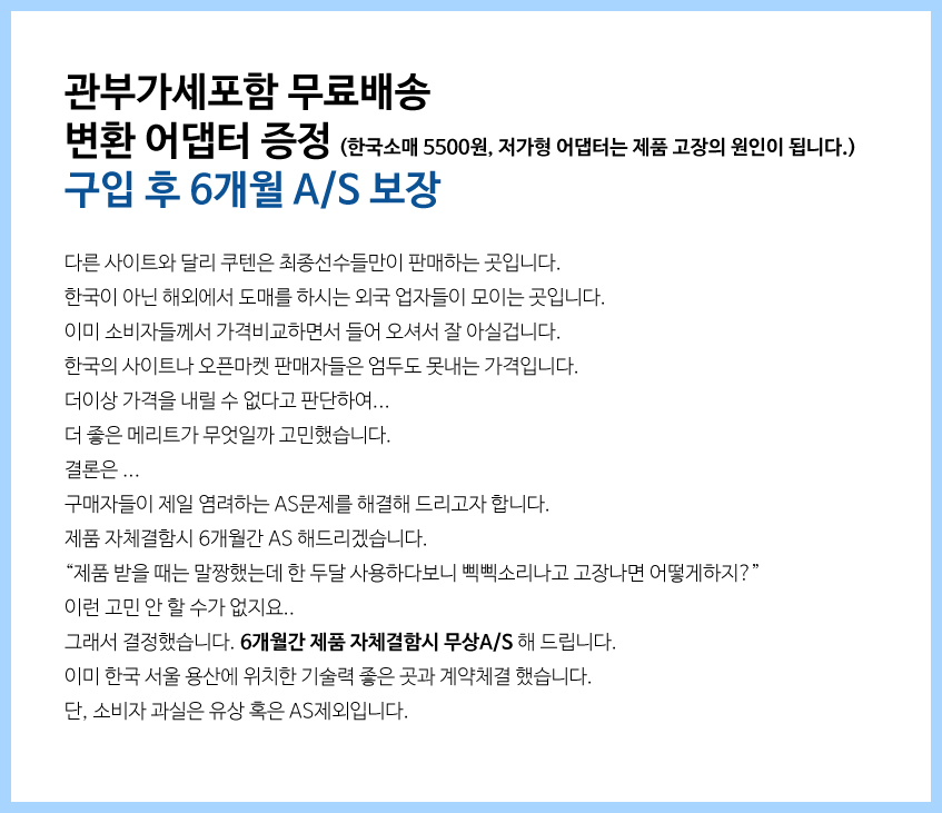 대부분의 판매업자들이 꼼꼼한 A/S는 신경 안쓰고, 가격만 1~2천원 내릴려고 합니다. 팔면 끝이라는 생각이지요.