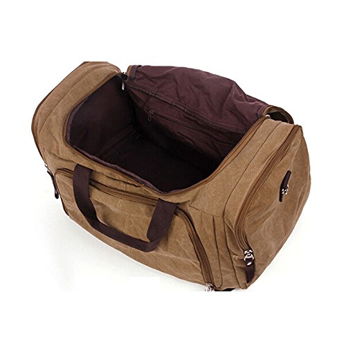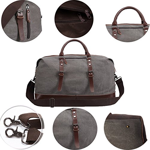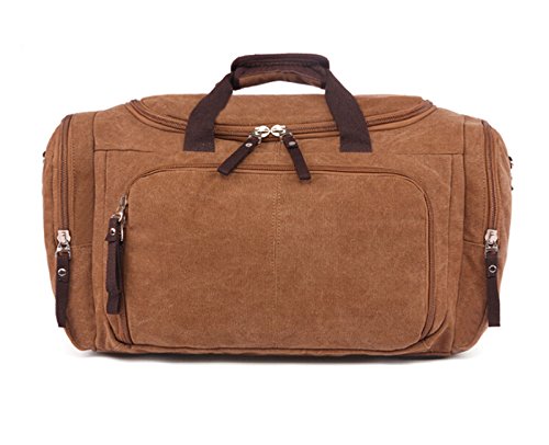 -. Title : Duffel Bag Canvas Leather Travel Tote Duffel Shoulder handbag Mens Weekender Bags
