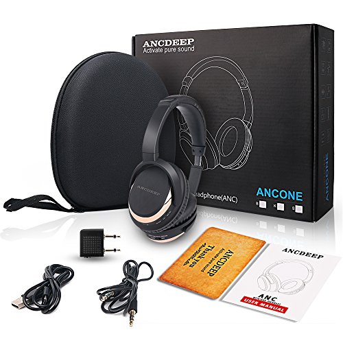 Active Noise Cancelling Bluetooth Headphones, ANCDEEP Wireless Earphones Over-ear Stereo Headsets with Built-in Microphone and Volume Control (Elegant Rose Gold)
