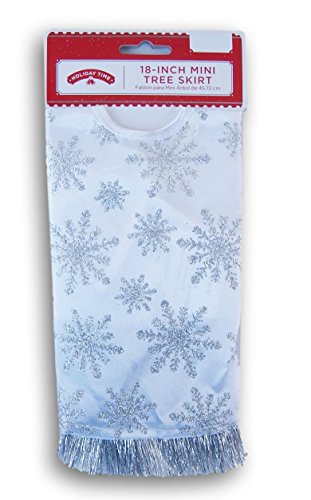 Holiday Time 2017 Miniature Christmas Tree Skirt - White with Silver Glitter Snowflakes - 18 Inch