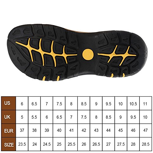 This shoes were constructed for lightweight comfortable experience, we combines mesh textile and ports for air and water flow to allows your feet to breathe in hot weather. Versatile design features make this sturdy nubuck upper sandal great for outdoor wear,these sandals come designed with a cushioned footbed that is enriched with anti bacterial properties,while a cushioned fabric lining provides sweat absorbency. An adjustable heel aid in providing a customized fit. If you have any questions,please contact us without hesitable,we will be patient here. SIZE FOR MEN 9.3"-9.45"foot, suggest size : 6.5US=EU/FR 38 9.5"-9.65"foot, suggest size : 7 B(M)US=EU/FR 39 9.68"-9.84"foot, suggest size : 7.5 B(M)US=EU/FR 40 9.88"-10.04"foot, suggest size : 8 B(M)US=EU/FR 41 10.07"-10.24"foot, suggest size : 8.5 B(M)US=EU/FR 42 10.28"-10.43"foot, suggest size : 9 B(M)US=EU/FR 43 10.47"-10.63"foot,suggest size:9.5 B(M)US=EU/FR 44 10.67"-10.83"foot,suggest size:10 B(M)US=EU/FR 45 10.87"-11.02"foot,suggest size:10.5 B(M)US=EU/FR 46 11.06"-11.22"foot,suggest size:11 B(M)US=EU/FR 47 0 |