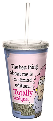 Tree-Free Greetings 16-Ounce Double-Walled Cool Cup with Reusable Straw, Aunty Acid Totally Unique (CC98405)