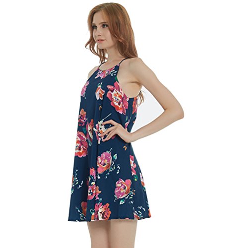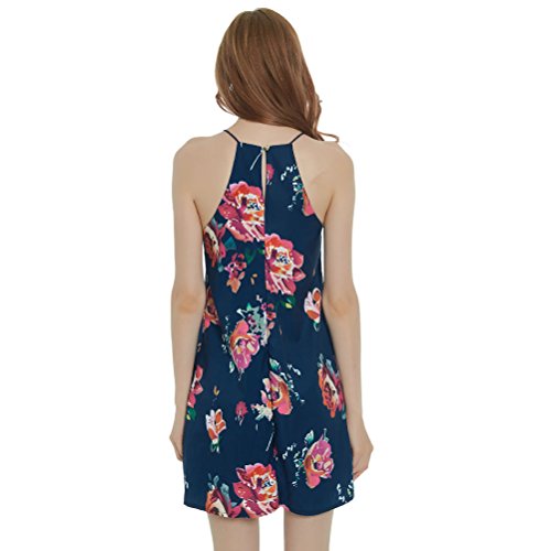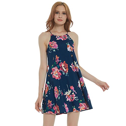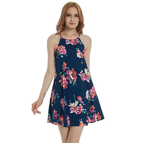 WLLW Women Boho Sleeveless Round Neck Floral Print A-line Bohemian Mini Dress