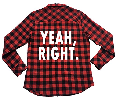 (Apple Orange Gifts)/Accessories/Scarves/DIRECT FROM USA/Yeah Right - Plaid Flannel Unisex Shirt Funny Joke Humor Sarcasm Sarcastic