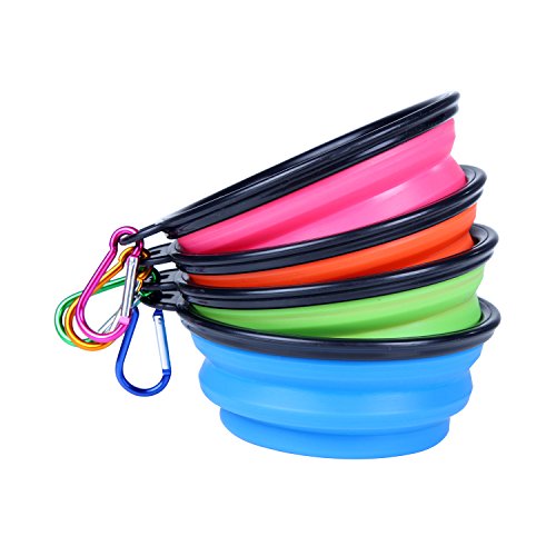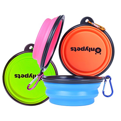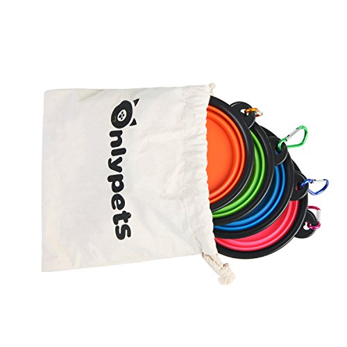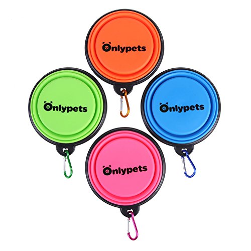 Onlypets Silicone Collapsible Pet Travel Bowls for Food & Water Portable Dog Bowls with Carabiner, Pack of 4