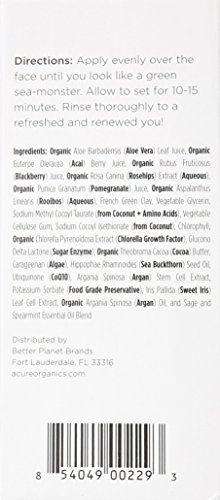 -. Binding : Health and Beauty -. Brand : Acure -. Department : 15 Face Mask -. EAN : 0854049002293 -. Feature : Work over your cells with the power of Moroccan Argan Stem Cells and Chlorella Growth Factor, a true synergy of cell revitalization. / French Green Clay draws out impurities while Moroccan Argan Oil, CoQ10 and Seabuckthorn Oil provide moisture. Serious cell repair! / Sested Use: Apply evenly over the face until you look like a green sea-monster. Allow to set for 10-15 minutes. Rinse thoroughly to a refreshed and renewed you! -. IsAdultProduct : 0 -. Label : Acure -. Manufacturer : Acure -. Model : 854049002293 -. MPN : WEB-018 -. NumberOfItems : 1 -. PackageQuantity : 1 -. PartNumber : WEB-018 -. ProductGroup : Beauty -. ProductTypeName : BEAUTY -. Publisher : Acure -. Size : 1.75 oz -. Studio : Acure -. Title : Facial Mask CGF + Argan Stem Cell + 2% Chlorella, 1.75 oz -. UPC : 854049002293