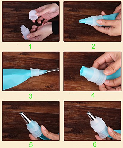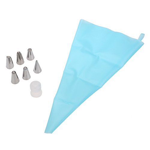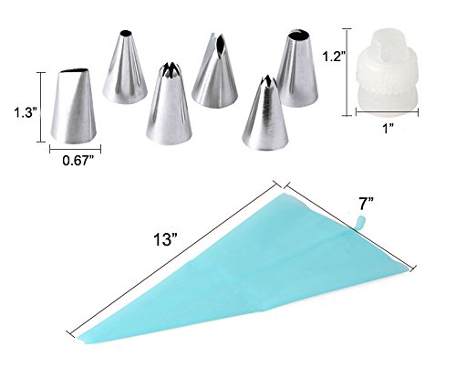 Warmtree Cake Decorating Tips Kits - 6 Pieces Stainless Steel Piping /Dispenser Nozzle ,1 Piece Reusable Coupler,1 Piece Reusable Silicone Pastry Bag/Decorating Bag