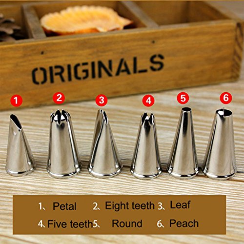 - Cake decorating tips: Round, Leaf, Petal, Five teeth, Eight teeth ,Peach