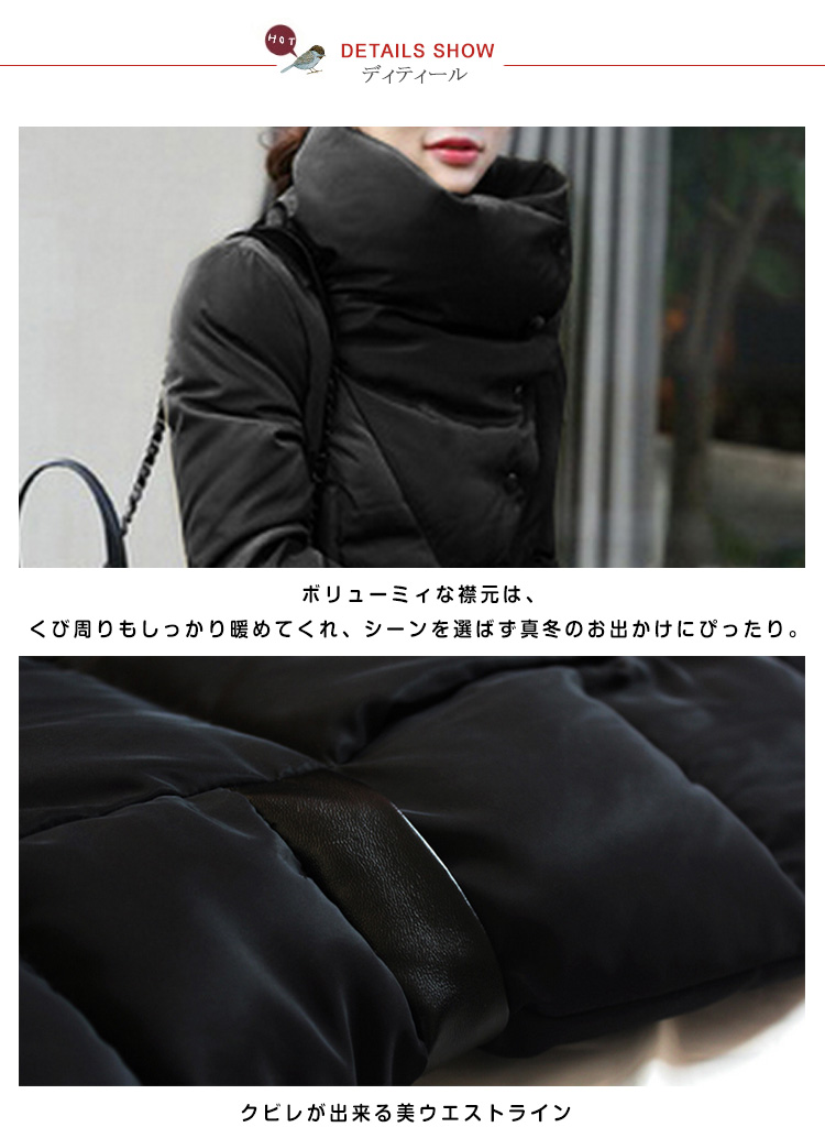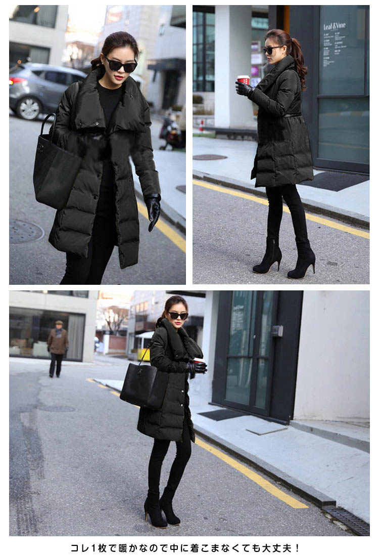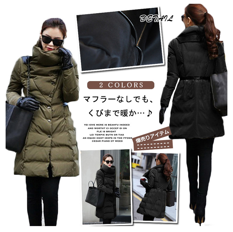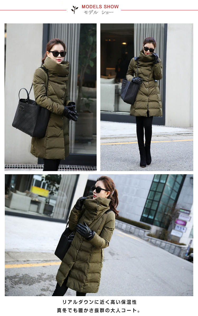 | マフラーなしでも、くびまで暖か…♪リアルダウンに近く高い保温性真冬でも暖かさ抜群の大人コート。余計な飾りのないシンプルデザインでもたつき知らず美ラインシルエット。ボリュームのある襟は小顔に見え防寒にも優れています。コレ1枚で暖かなので中に着こまなくても大丈夫!スキニーやレギパンなど、細身のボトムを合わせると美脚効果UP◎ | |