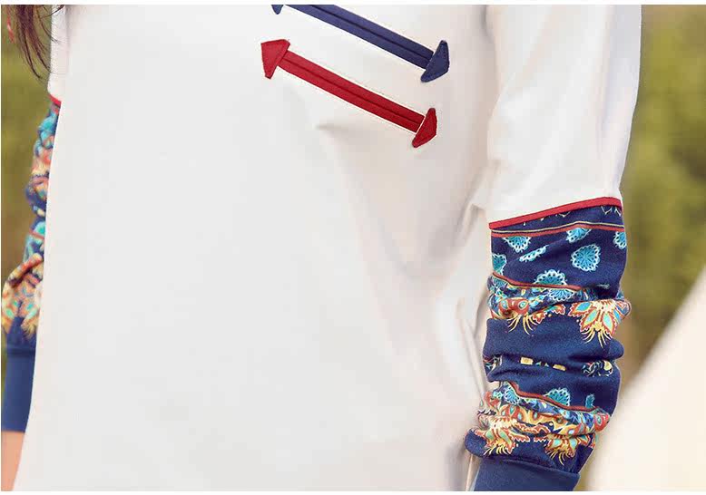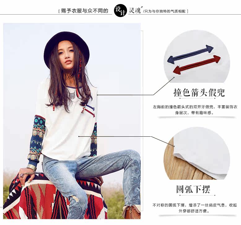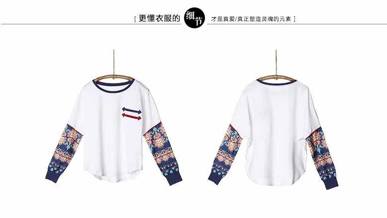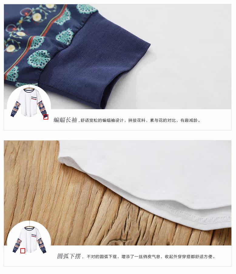 圆领拼接蝙蝠长袖圆摆宽松针织T恤