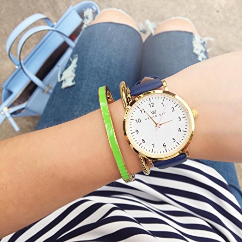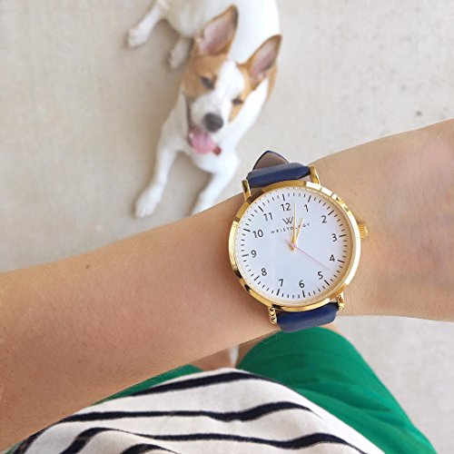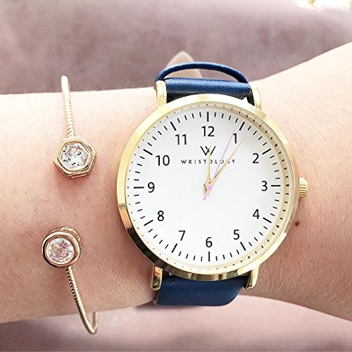 The Olivia Womens numbers chunky boyfriend watch by WRISTOLOGY is gorgeous and oh-so-dainty. She features an on-trend, super slim case in beautifully feminine gold, a super clean numbered and gold face, and a navy blue genuine leather strap. She looks great and transitions from day to night like a pro.