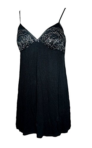 Morgan Taylor Miss Lace Trim Knit Baby Dolls Chemise Black (S)
