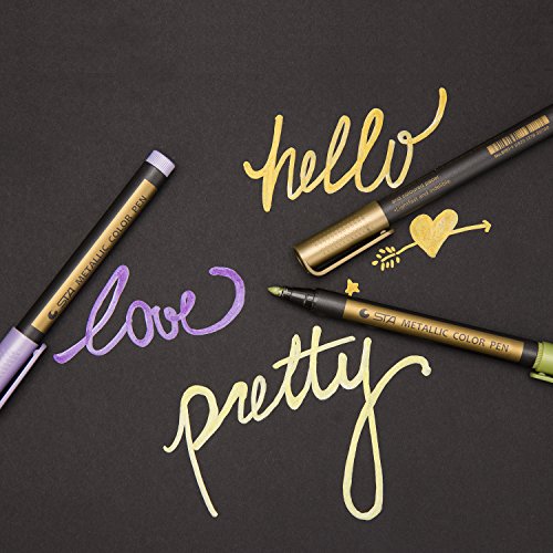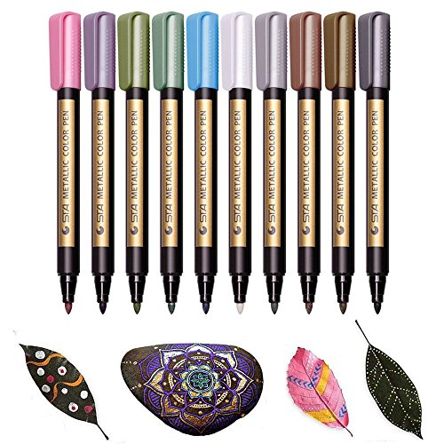 - PREMIUM QUALITY - Metallic colors work on virtually any surface, including dark and colored paper; results are vivid and bright, Comfortable and easy to hold in hand.Fine point tip gives 2.0mm line.Set of 10 Color: Gold, Silver, White, Pink, Olive, Green, Blue, Black,Purple and Brown.