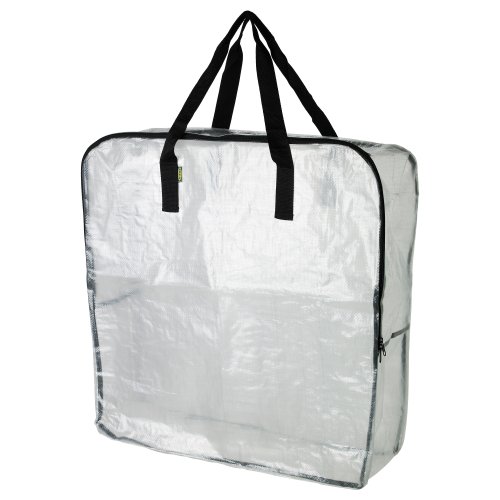 Extra large clear storage bags are made of durable 100% polypropylene and let you conveniently see the contents inside. Each bag measures 25.5 inches wide by 25.5 inches tall by 8.75 inches deep.