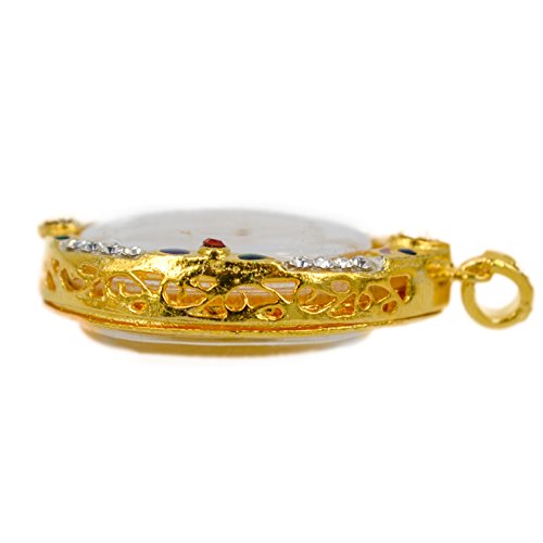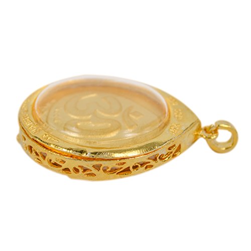 -. Binding : Jewelry -. Color : Gold -. Department : mens -. Feature : Size : 4.0 cm. x 3.0 cm. x 1.0 cm. (Approx.) / Weight : 22 grams. (Approx.) / Material casing & amulet : Brass and gold plating sand brushed / Material cover : Plastic / Packing : Comes in a gift box -. Label : Thailand -. Manufacturer : Thailand -. Model : GCS1 -. PackageQuantity : 1 -. ProductGroup : Jewelry -. ProductTypeName : FASHIONNECKLACEBRACELETANKLET -. Publisher : Thailand -. Studio : Thailand -. Title : Hindu OM Lord Ganesha Talisman Holy Amulet Gold Pendant Crystal GOM1