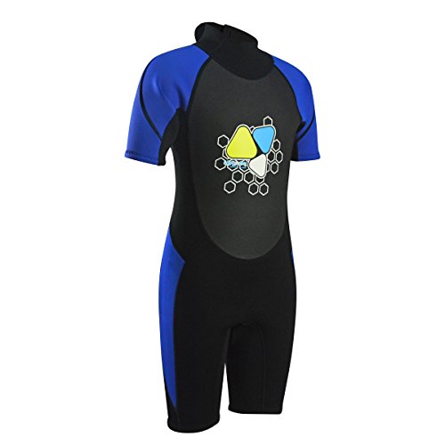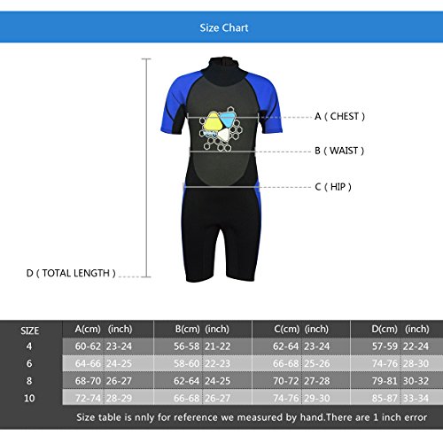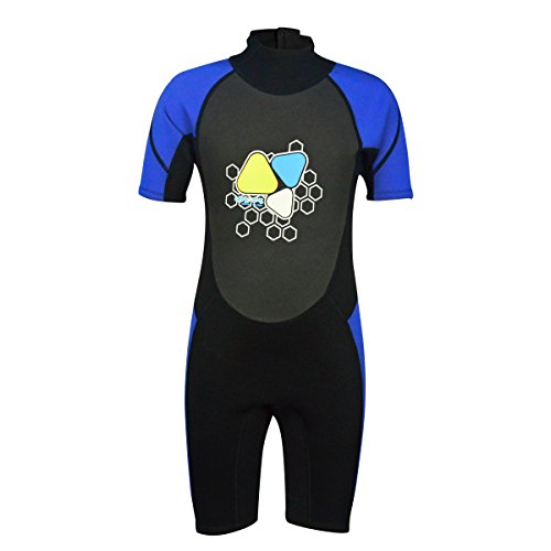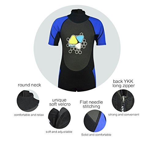Kids Wetsuits 2mm Neoprene shorty wetsuit for Boys Girls One Piece Swimsuit UV Protection-Brand Layatone (Blue, 6)