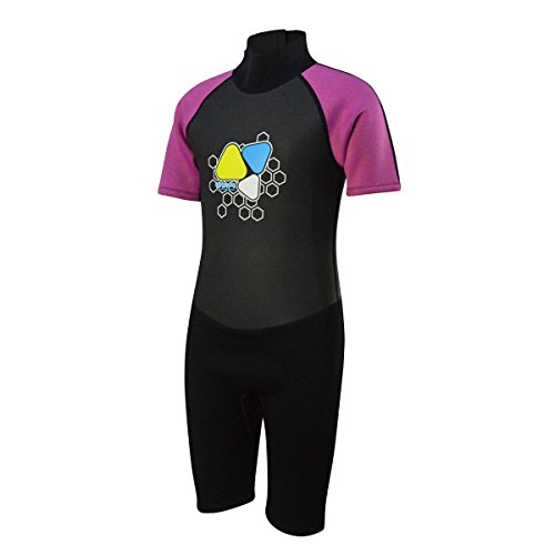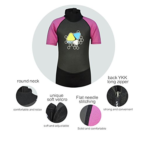 Kids Wetsuits 2mm Neoprene shorty wetsuit for Boys Girls One Piece Swimsuit UV Protection-Brand Layatone (Pink, 6)