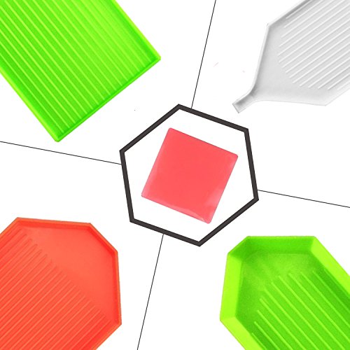 Different diamond trays: 2×square trays, both sides can be used; 2×polygon trays; 1×oversize orange tray; 1×white open tray for convenience of pulling diamonds back into bags.
