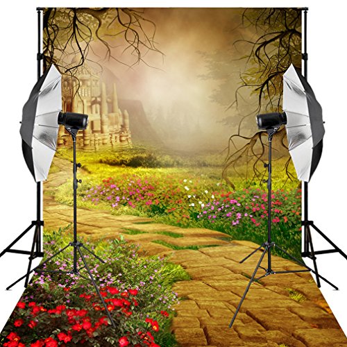 Kooer 5X7ft Vinyl Fabric Photography Backdrops Outdoor Colours of Flowers Castle Rock Crawling