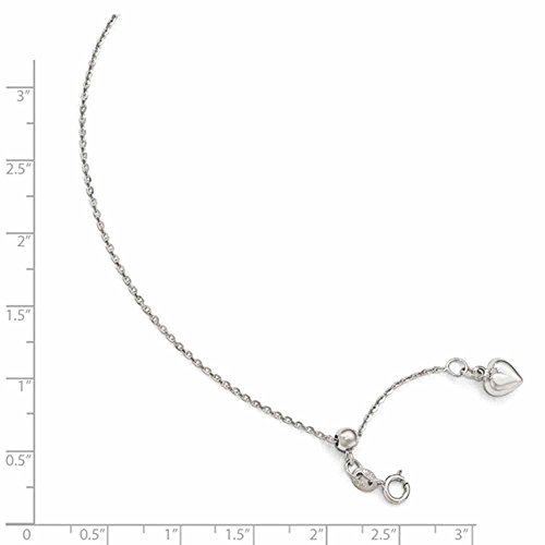 -. Title : 14k White Gold Heart Dangle Anklet Adjustable to 11 inches