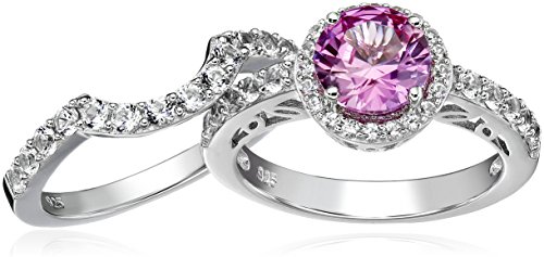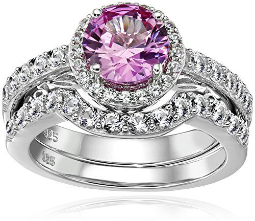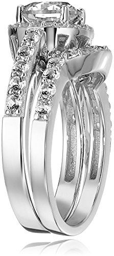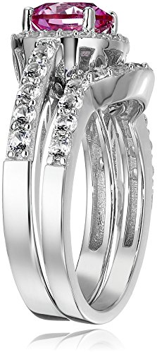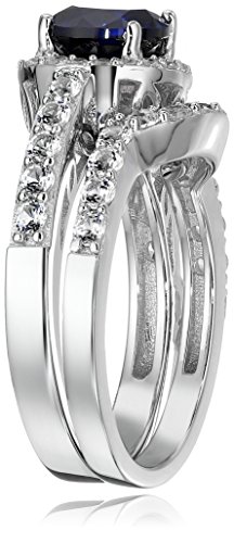 -. Title : Sterling Silver Framed Round Gemstone and Created White Sapphire Accents Engagement Ring Set