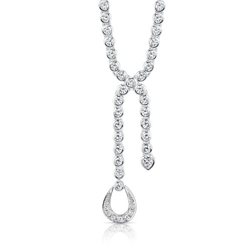 -. Title : Cubic Zirconia Full Line Tennis Necklace Earrings Set Sterling Silver Rhodium Nickel Finish