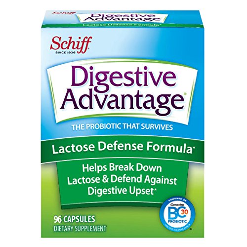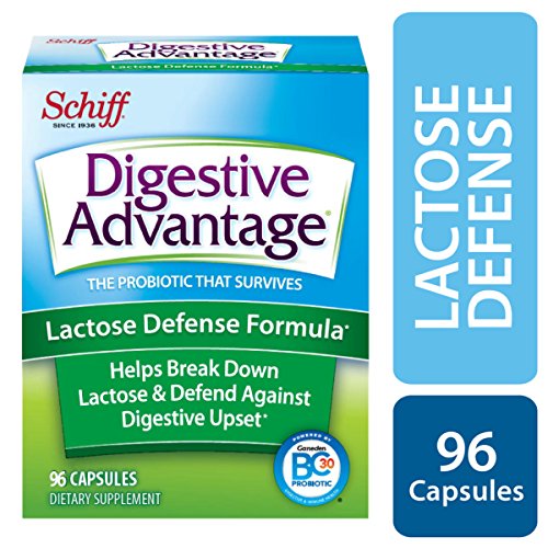 Digestive Advantage Lactose Defense Formula contains 2 powerful ingredients to support your digestive health: BC30 probiotic to help restore the natural balance of good bacteria within your intestinal tract, and Lactase to help with the digestion of lactose commonly present in dairy foods. If not broken down, lactose can cause gas, bloating, and occasional diarrhea. The unique patented daily probiotic in Digestive Advantage Lactose Defense Formula, BC30, is protected by a protein shell which allows it to survive through the harsh conditions of your stomach to reach the intestines where you need it most. It's the probiotic supplement that survives stomach acid 100x better than yogurt and leading probiotics. These statements have not been evaluated by the Food and Drug Administration. This product is not intended to diagnose, treat, cure or prevent any disease. Based on median % survivability of Digestive Advantage probiotic vs. leading probiotic supplements and 19 probiotic yogurts in simulated gastric PH for 2 hours. Survivability and delivery of probiotic cells to the small and large intestines is one of the several factors influencing overall product effect.Feature