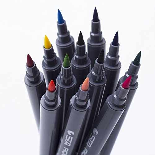 [Description] RICH COLORS- This set contains 12 bright colors art markers - blue_ red_ yellow_ green_ orange_ violet_ light blue_ light green_ light pink_ dark pink_ brown and black DUAL TIP- Dual tip meets all your needs. The 2mm brush tip can be used for free flowing pressure sensitive lines in activities like illustration or calligraphy. the 0.8mm fine point tip lets you dial in the detail giving you precise consistent lines WATERCOLOR MARKERS - Water based no bleed ink will keep your works safe.The colors can be seattered with water and mixed perfectly USING- Our markers are self cleaning and perfect for a wide variety of activities and mediums such as drawing_ coloring_ sketching_DIY and more.PP barrel and cap guarantee long service life 100% SATISFACTION MONEY BACK GUARANTEE!We confidently back our product with a 100% Satisfaction_ no hassle_ money-back guarantee