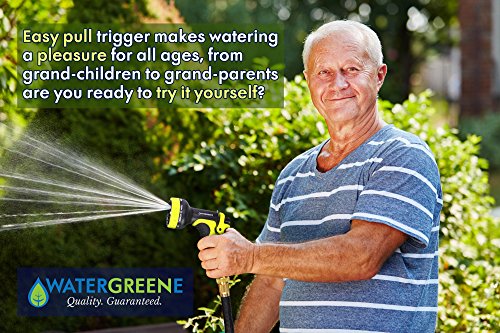 - ✔️ FREE BONUS - 9 function spray nozzle is tough, practical and fun to use! Easy-pull trigger can be easily operated by anyone from kids to grandmas - great for watering the lawn, misting delicate flowers, car washing and more.