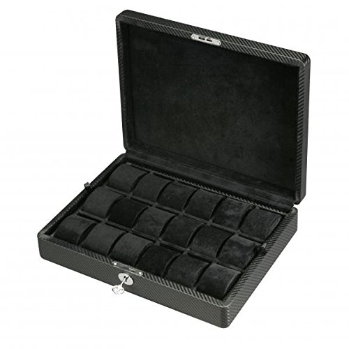 -. Title : Men's 18 Watch Box Case and Removable Trays in Patterned Black