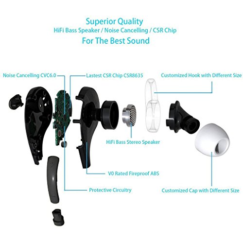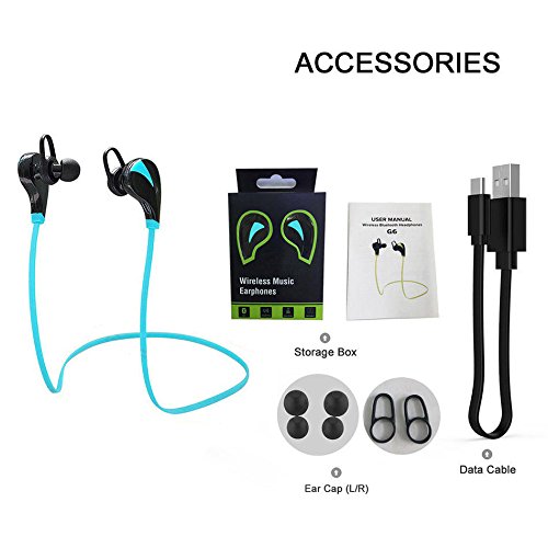 -. Feature : ENJOY CRYSTAL CLEAR STEREO SOUND AND GET CARRIED AWAY: Music accompanies our happiest and saddest moments, it can instantly change our mood, bring back memories or make us feel elated and energized! How about experiencing all the above to the fullest? This top notch wireless Bluetooth headset is all you need to enjoy your favorite kind of music in HD sound! Unmatched noise cancellation, stereo sound and advanced technology in one! / SO COMFORTABLE YOU WILL FORGET YOU HAVE THEM ON: Enough with all the heavy, bulky earbuds that constantly fall off! It's high time you enjoyed maximum comfort. The soft ear cushions will nicely adjust, fitting perfectly in your ears. Moreover, the ear hooks will assure extreme stability, allowing you to move freely as you listen to your favorite tracks. / COUNTLESS POSSIBILITIES AND UNLIMITED USES: These noise reduction, in ear Bluetooth headphones are incomparably versatile. Their lightweight, sweat proof design gives you the chance to use them anywhere and anytime you like! Put them on and go to the gym, go running, or lay back and have a break. In addition, the 6-8 hours talking and playing time, along with 150 hours standby time and the 10 meters operating range, promise never ending fun. / USE YOUR CELL PHONE, TABLET OR LAPTOP: These must have wireless Bluetooth earbuds can be effortlessly paired with any device, including your mobile phones, your tablets, your laptops, your computers and more! Actually, you can pair them with 2 devices at the same time! No need to lose important calls anymore! Last but not least, the easy to reach control buttons will help you adjust the volume and pick track in no time. / A PACK THAT INCLUDES MANY BONUS ITEMS: Along with your G6Plus wireless Bluetooth running headphones, you will also receive 1 micro USB charging cable, 3 earbuds, 2 ear hooks and a user's manual at no additional charge.