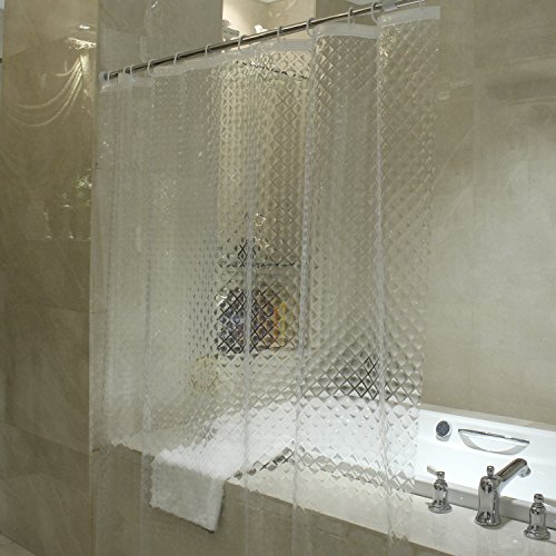 3D Effect Bathroom Shower Curtains,Waterproof Removable Shower Curtain Liner,Mildew Resistant, EVA Shower Curtain with 12 Hooks, 7272inch,Clear