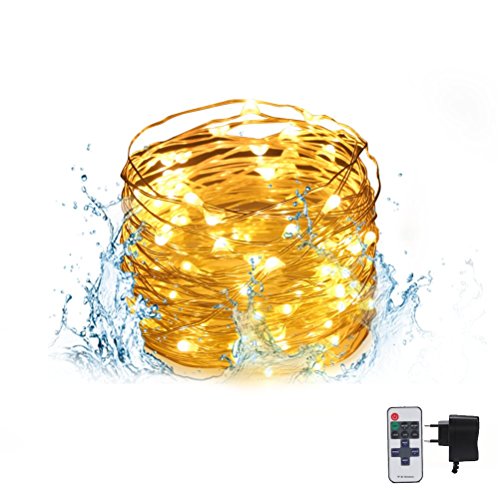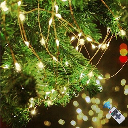 LED String Lights, Christmas Decorative Light String with Remote Control for Indoors & Outdoors, Waterproof, 100 Super Bright LEDs & 33 feet Copper Wire, Warm White (33 feet A)