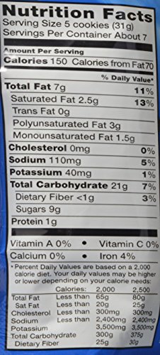 -. Feature : 8-ounce bags of chocolate chip cookies / Made with real chocolate and cocoa butter for rich chocolate flavor / Cholesterol-free; 4% RDA of iron per serving / Bite-sized cookies with big chocolate chips / Resealable bag great for on-the-go snacking