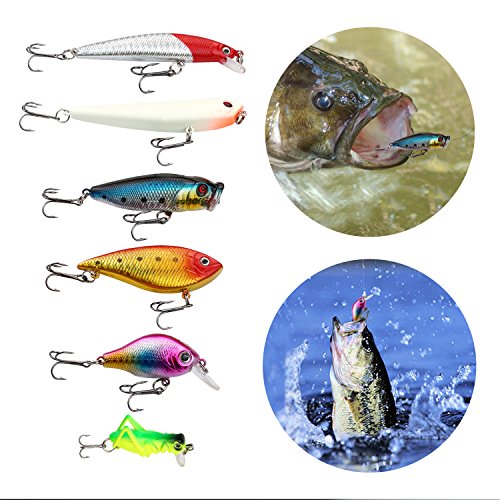 -. Feature : 140PCS Fishing Lure Tackle:Including Frog Lures, Hard Lures, Crankbaits, Minnow, Plastic Worms, Spoon Lures, Soft Lures, Popper, Jig Head, Bullet Weights Sinker, Plastic Corn, nearly all accessories you need in fishing, great attractors for bass, trout, catfish, panfish, etc. / Lifelike Designs: Lifelike and 3D eyes designs imitate the swimming action of small fish, verisimilar body detail as real fish, helps to attract a larger catch. / Saltwater & Freshwater: Covered different fish species and water depth, perfect for every occasion, such as ocean boat fishing, ocean rock fishing, ocean beach fishing, lake, river, reservion, pond, stream or shore fishing. / Lightweight and Compact: With a tackle box included, it's convenient to carry to anywhere you want and meet all your needs. Please be aware that the colors of the lures are randomly delivered due to different product stock, but not to impact the quality and quantity. / 100% CUSTOMER SATISFACTION GUARANTEE: 100% customer satisfaction is our top P.R.Iority. Full Money reimbursement if not being satisfied. Any concerns, CONTACT US directly and we will be happy to serve you.