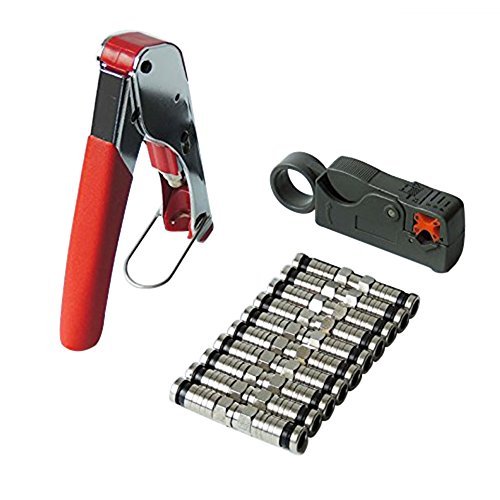-. Title : Universal Compression Crimp Tool Coaxial Cable Stripper with 20pcs F Connectors Kit for RG6 RG59 RG11 RG62 RG58 RJ45 Cat-6 Cat-7 Cables