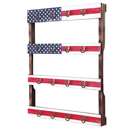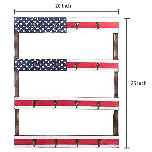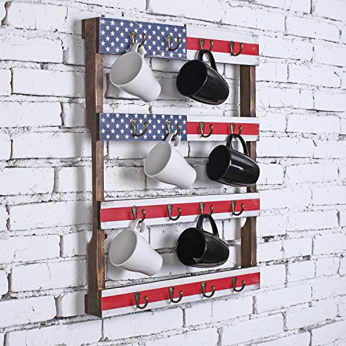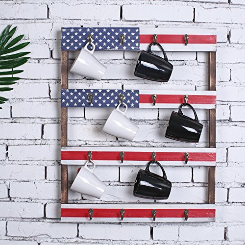 16 Hook Wall Mounted Distressed Wood American Flag Mug and Teacup Rack