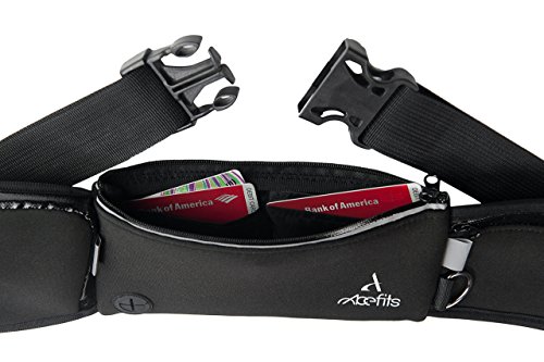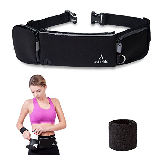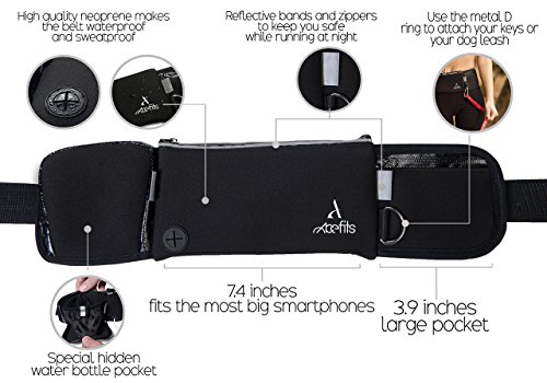 ?100% SWEAT AND WATERPROOF ?ADJUSTABLE SIZE The belt size is adjustable from32 to 42 inches to fit all your family members Weights only 0.26 lb. ?REFLECTIVE BANDS Stay safe at night ?D Ring Attach your dog leash and have a nice walk together. ?HEADPHONES OUTPUT ?NO BOUNCE ?HIDDEN WATER BOTTLE POCKET