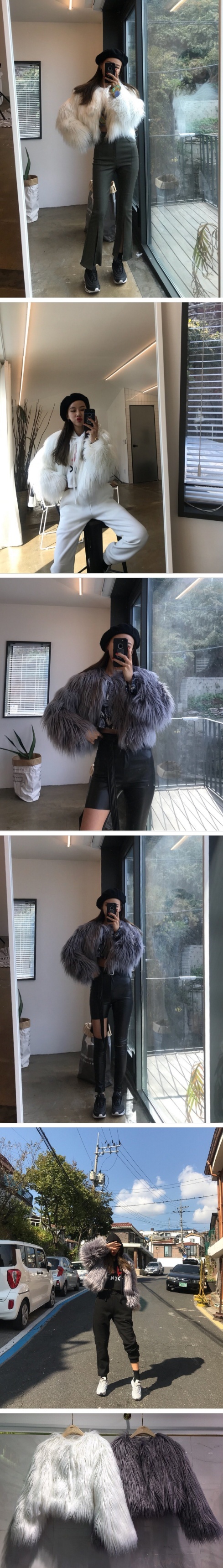 Women`s Faux Fur Cropped Jacket White Gray