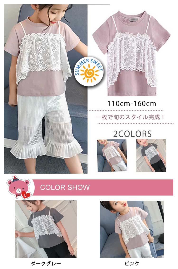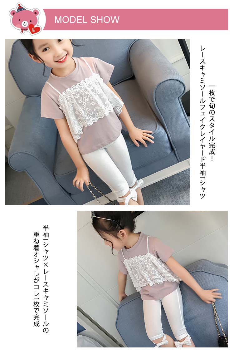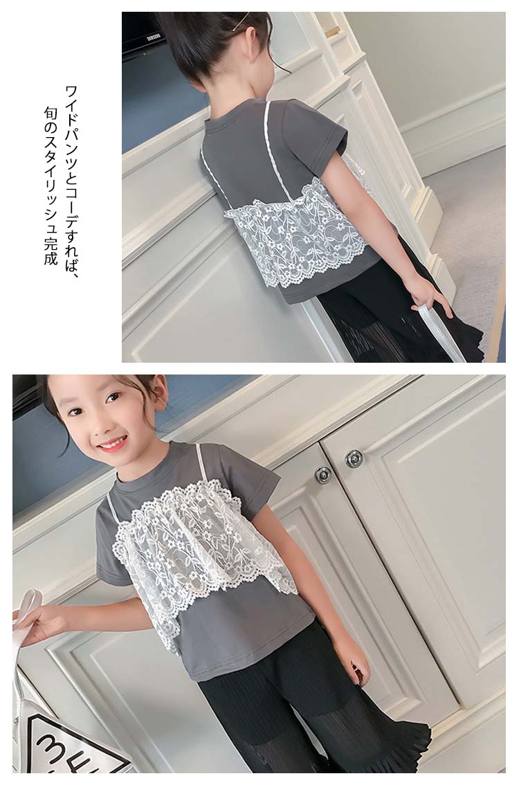 | 一枚で旬のスタイル完成!レースキャミソールフェイクレイヤード半袖Tシャツ半袖Tシャツ×レースキャミソールの重ね着オシャレがコレ1枚で完成レースキャミソールはトレンドのイレヘムとってもオシャレワイドパンツとコーデすれば、旬のスタイリッシュ完成 | |