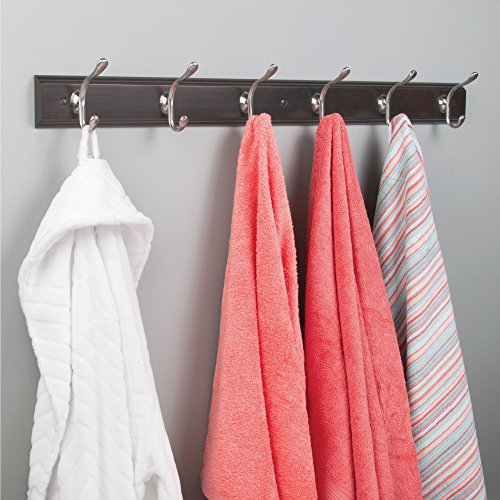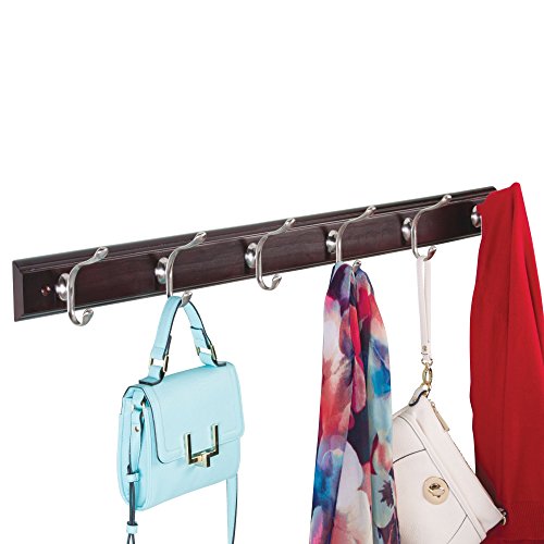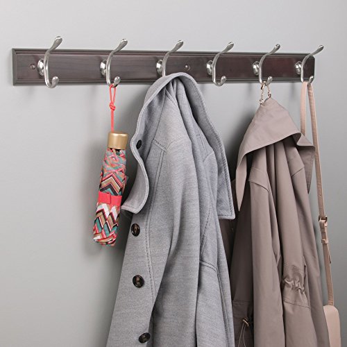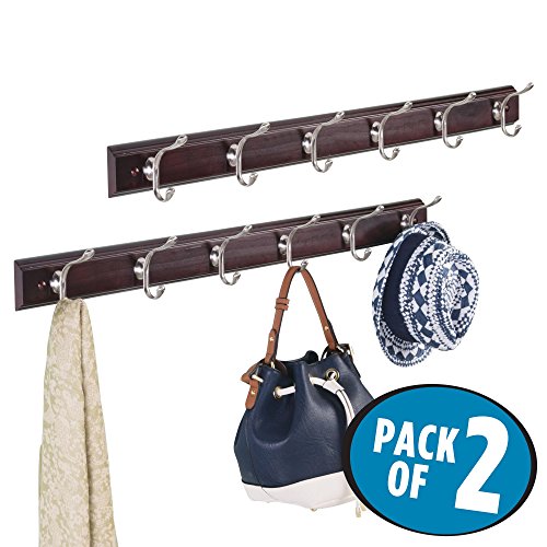 mDesign Wall Mount 12 Hook Steel Storage Organizer Rack for Coats, Hoodies, Hats, Scarves, Purses, Leashes, Bath Towels & Robes - Pack of 2, Espresso/Brushed Nickel