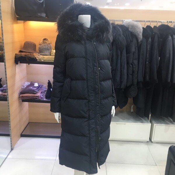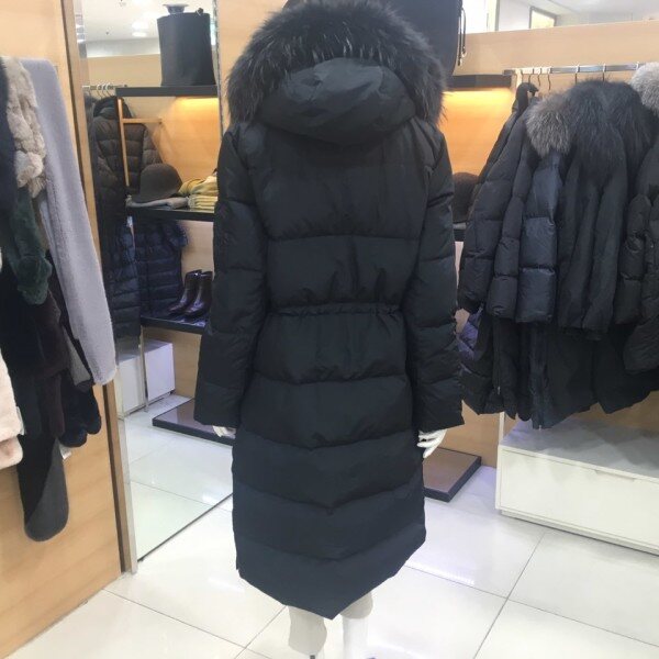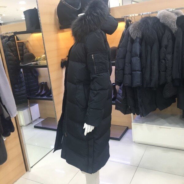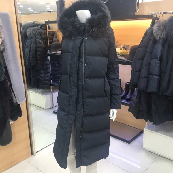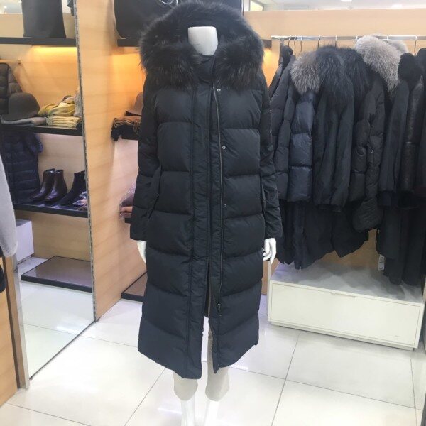 쉬즈미스 라쿤퍼가 트리밍된 오리솜털 충전재가 도톰하게 들어간 롱패딩점퍼예요 허리스트링으로 라인을 조절하여 다양한 스타일링이 가능한 디자인입니다