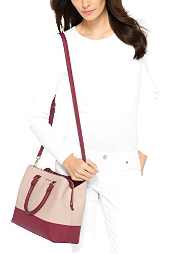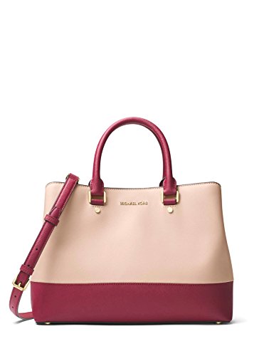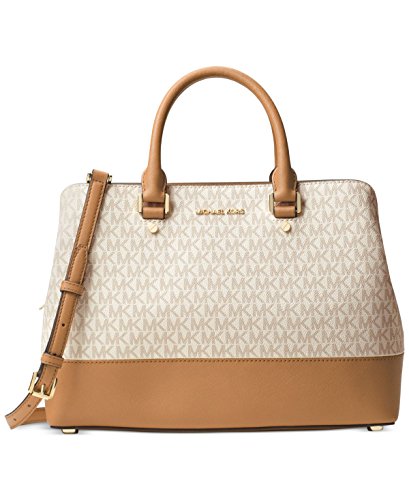 Product Description Bring signature sophistication to the office and beyond with this spacious Savannah satchel from MICHAEL Michael Kors, featuring a clever three-compartment design for essential organization. 13"W x 9-1/2"H x 4-4/5"D Interior features 1 zip pocket, 4 slip pockets and 1 key finder; triple compartment design with center zip compartment and 2 magnetic-snap compartments 4-1/2"L double handles; 22"L-24"L adjustable and detachable strap Exterior features shiny gold-tone hardware, logo and feet Bag converts from crossbody to tote by removing strap 0