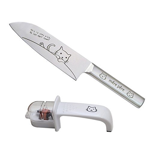 -. Title : メルペール ネコ 三徳包丁 刃渡り約170mm 【オリジナル ネコ 絵柄入り 包丁研ぎ 付き】