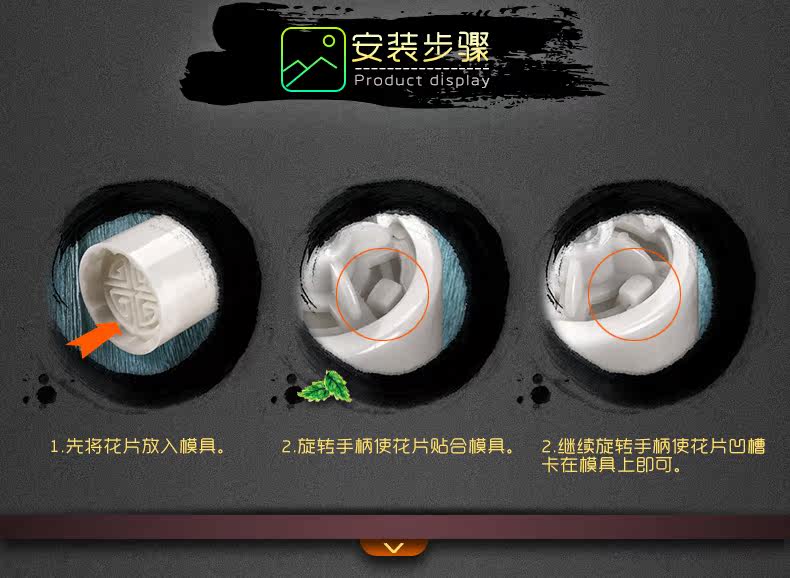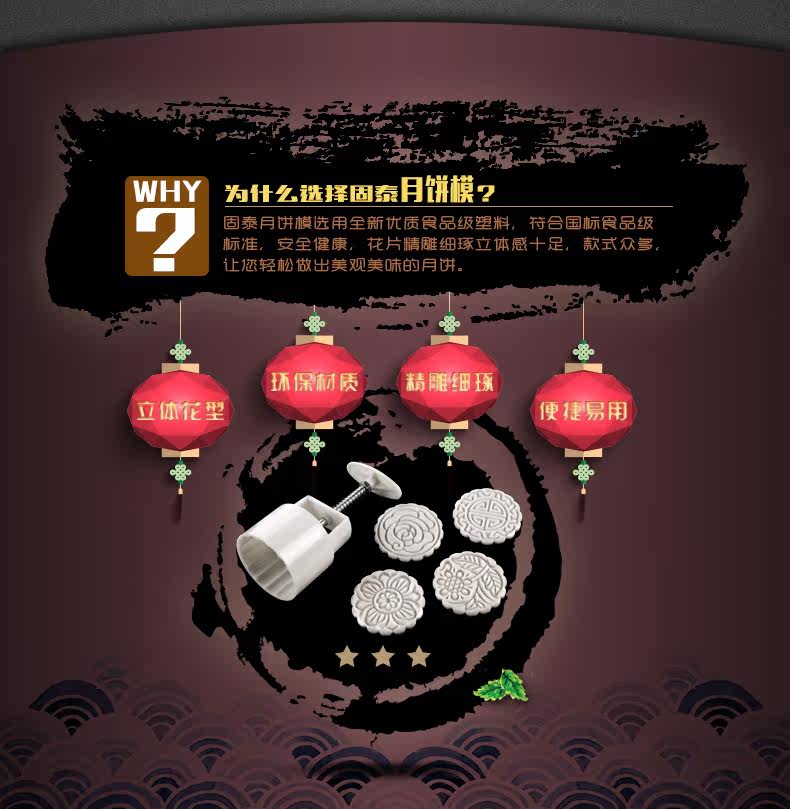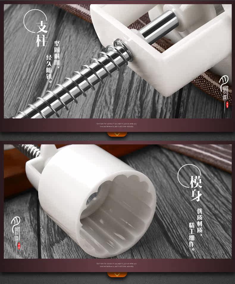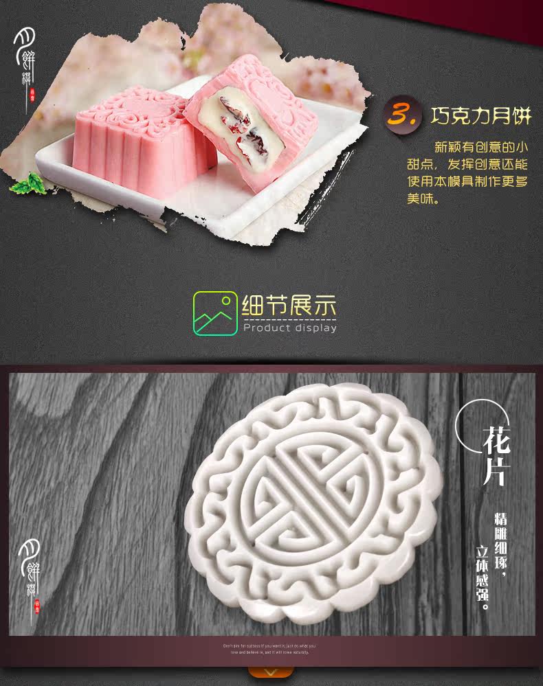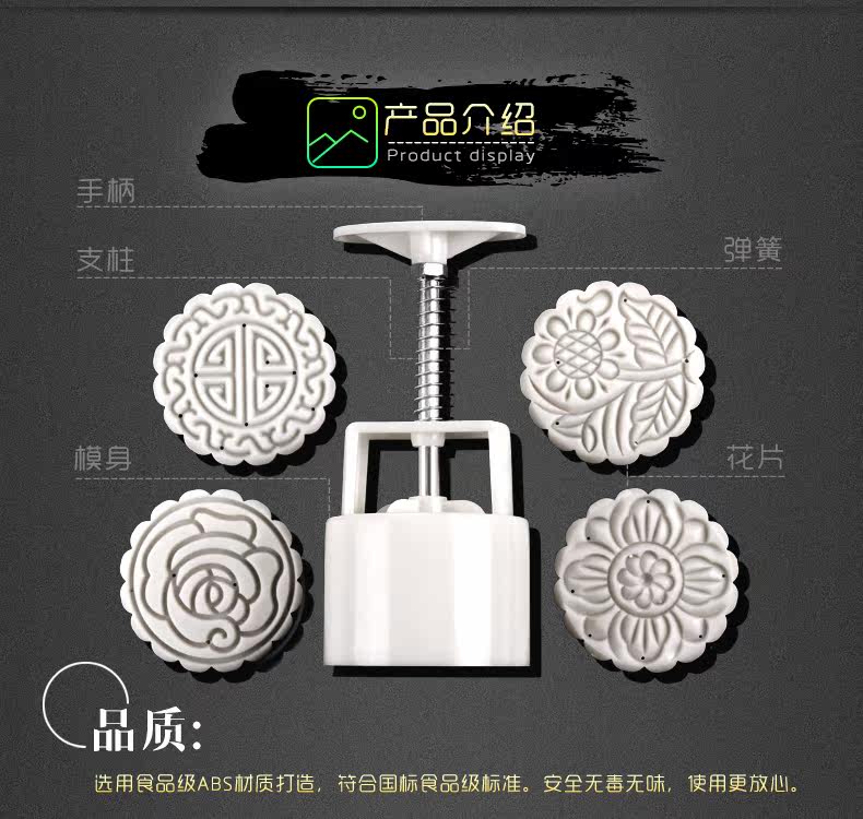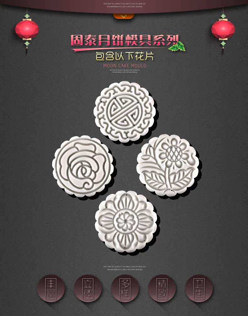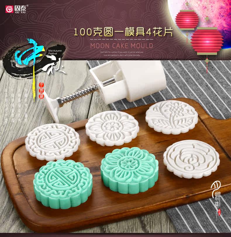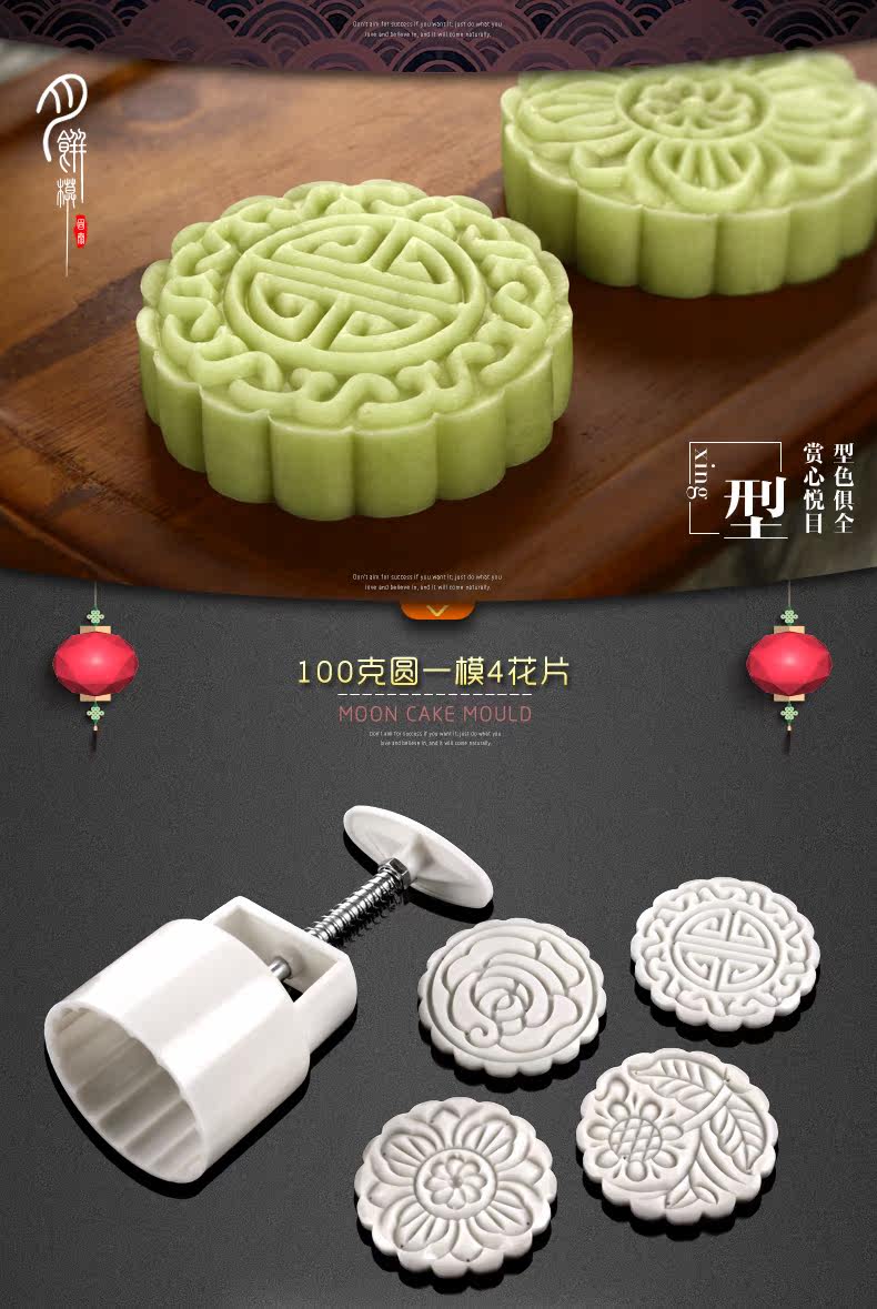 塑料手压月饼印模 100克5头月饼模具套装 4个花片 玫瑰经典图案