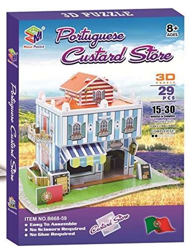 Studio : 3d Puzzle Place Publisher : 3d Puzzle Place Binding : Toy Product Description This exciting puzzle is fun and challenging. It will help you exercise your spatial thinking and hard dexterity while offering hours of fun as you figure out how to put together all pieces to form a beautiful and attractive scale model puzzle. The puzzle can be displayed on your desk, bookshelf, home or office. Stimulating and educational, this puzzle will make a great gift for anyone young or old, friend or family and students of all ages. Combine power and imagination for a beautiful creation this puzzle with multiple pieces will enable children to create and imagine the most unbelievable structures on their own imagination or follow ideas from the instructions that are included in the set. An instruction leaflet is included which provides instructions on how to construct the puzzle, as well as interesting facts about the model. This puzzle is manufactured in china and is sold in 80 countries throughout the world. Specifications: - Portuguese custard store - model:B668-59 - 29 pieces - construction time: 15-30 minutes - level: 2 - age: 6-11 years and up - weight: 3.2 oz. - size of finished model: 6.03 x 4.57 x 4.17 inches - box size: 6.30 x 0.71 x 8.66 inches. 0